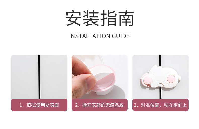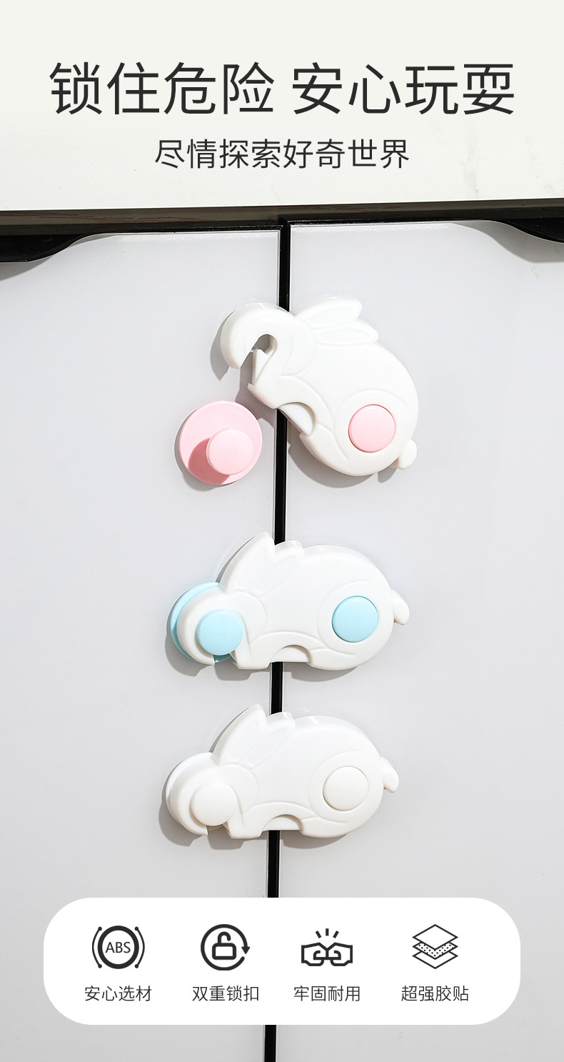 Rabbit Appearance Horizontal Latch Children's Clip-Proof Hand Cabinet Door Drawer Protection Safety Lock Baby Refrigerator Cabinet Latch Drawer Lock